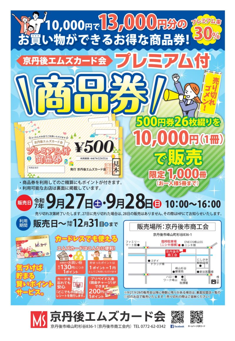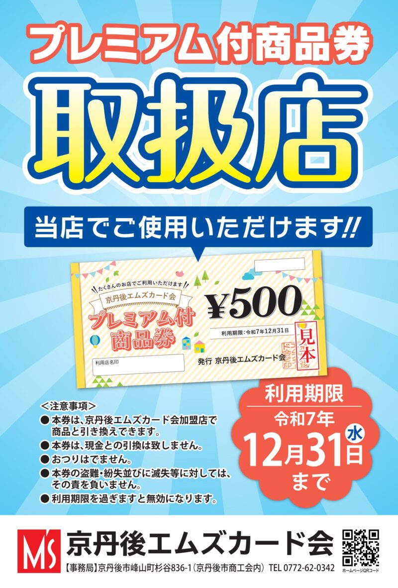 ●本券は、京丹後エムズカード会加盟店で商品と引き換えできます。